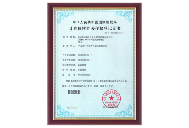 HF4系列軟件著作權(quán)登記證書