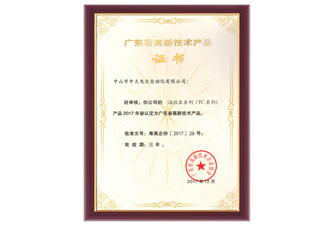 TC系列高新技術(shù)產(chǎn)品證書